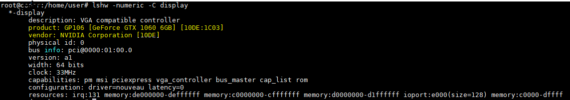 # lshw -numeric -C display