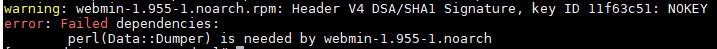 Fix Webmin Error: Failed dependencies: perl(Data::Dumper)