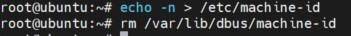 echo -n > /etc/machine-id rm /var/lib/dbus/machine-id