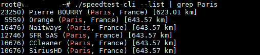 # ./speedtest-cli --list | grep Paris