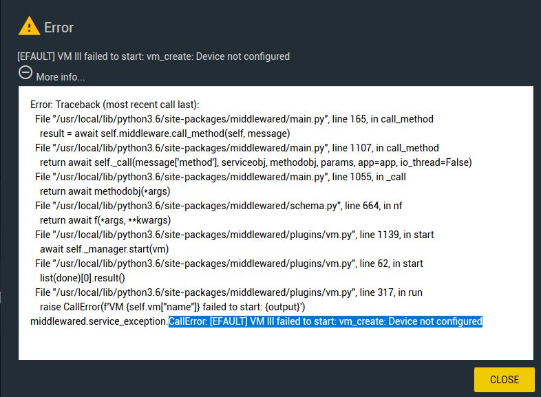 FreeNAS “failed to start: vm_create: Device not configured” Error Fix