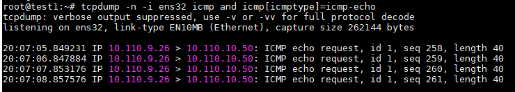 # tcpdump -n -i ens32 icmp and icmp[icmptype]=icmp-echo