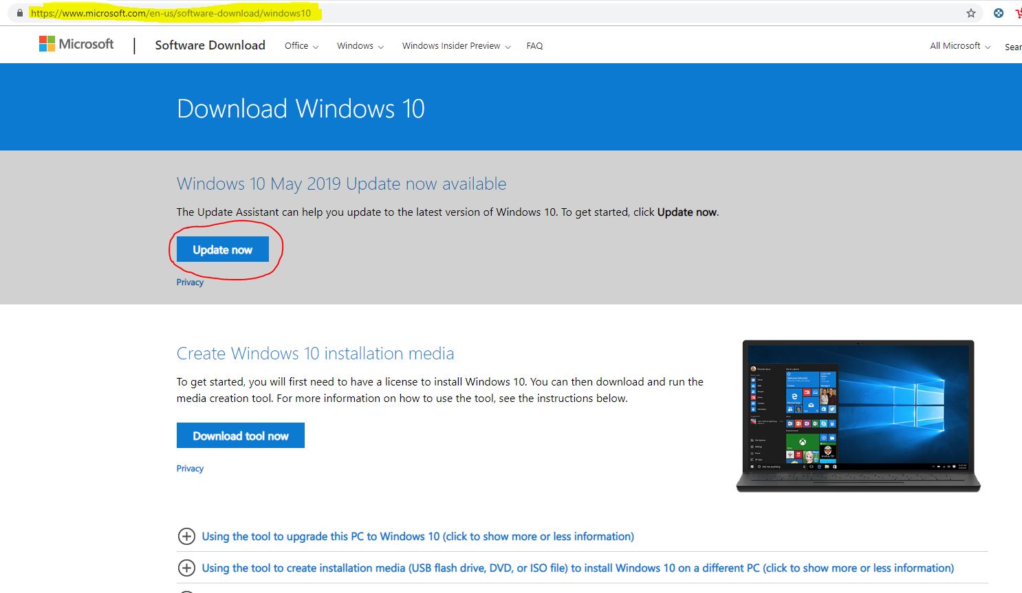 To install Latest Windows 10 may 2019 Update Version 1903 download Update Assistant tool from Microsoft official website.